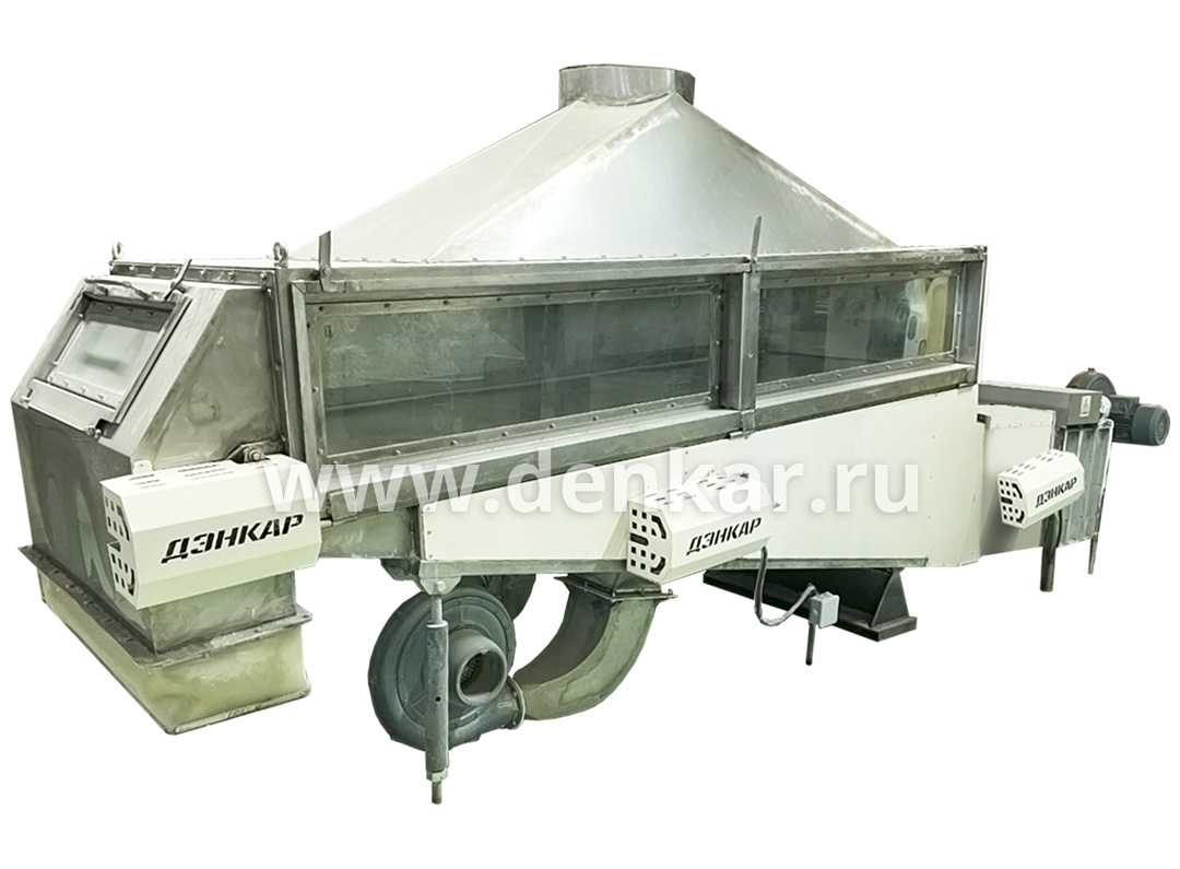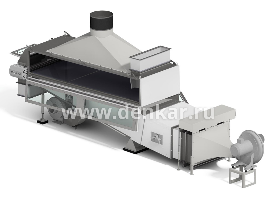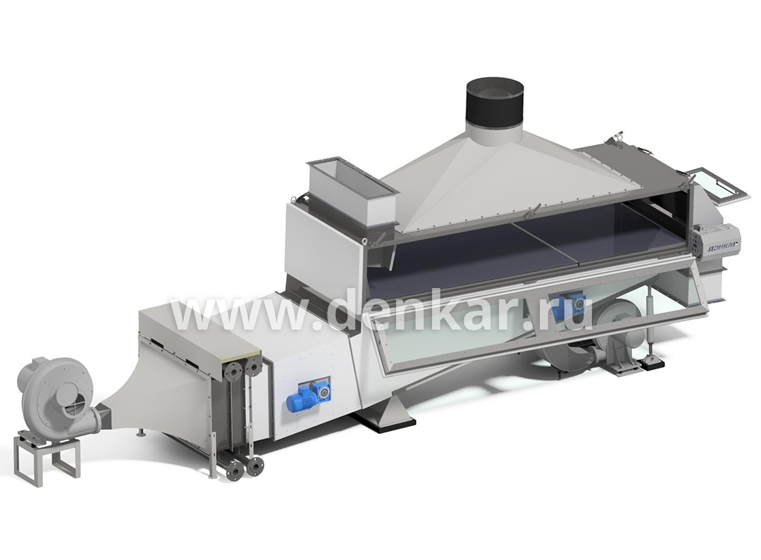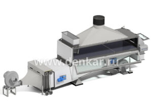 Высота слоя и длительность пребывания продукта в машине может регулироваться заслонкой задержки продукта и наклоном камеры (сита).